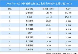 中商情报网讯:9月,我国磷酸铁锂动力电池装车量62.2GWh,环比增长20.5%,同比增长50.4%。TOP10企业磷酸铁锂动力电池装车量合计5...[详细]