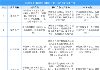 2025年中国高值医用耗材行业十大潜力企业排行榜(附榜单)