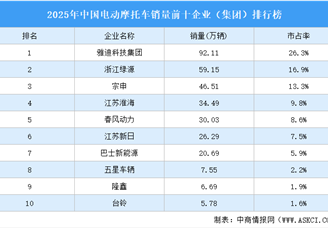 2025年中国电动摩托车销量前十企业(集团)排行榜(附榜单)
