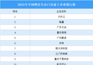 2025年中国燃油摩托车销量前十企业(集团)排行榜(附榜单) 2025年中国电动摩托车销量前十企业(集团)排行榜(附榜单) 2025年中国摩托车出口量前十企业排行榜(附榜单) 2025年中国汽车销量前十企业(集团)排行榜(附榜单) 2025年中国前十家MPV生产企业销量排行榜(附榜单) 2025年中国前十家SUV生产企业销量排行榜(附榜单) 2025年中国前十家轿车生产企业销量排行榜(附榜单) 2025年全国各省出口总额排行榜(附图表) 2025年全国各省进出口总额排名(附榜单)