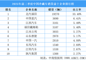 2025年前三季度中国冷藏车销量前十企业排行榜(附榜单)