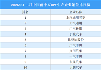 2026年1-3月中国汽车销量前十企业(集团)排行榜(附榜单)