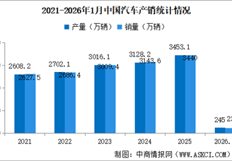 中商情报网讯:2026年1月,汽车产销分别完成245万辆和234.6万辆,产量同比增长0.01%,销量同比下降3.2%,环比分别下降25.7%和28....