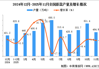 2025年11月全国原盐产量数据统计分析