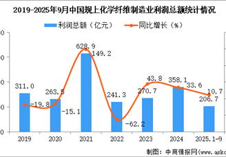 2025年1-9月中国化学纤维制造业经营情况:利润同比增长10.7%