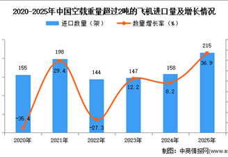 2025年1-12月中国空载重量超过2吨的飞机进口数据统计分析:进口量215架