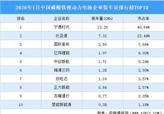 2026年1月中国磷酸铁锂动力电池企业装车量排行榜TOP10(附榜单)