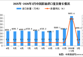 2026年3月中国原油进口数据统计分析:进口量4998.2万吨