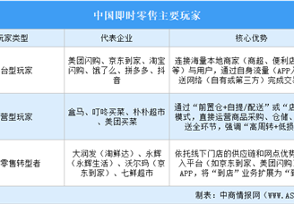 中商情报网讯:即时零售的产业链涉及“用户-平台/自营-本地商家-配送”四大环节,根据主导角色不同,可分为三大类玩家:平台型玩...