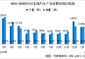 2026年2月东风汽车产销情况:销量同比减少28.1%(图)