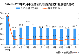 中商情报网讯:据中商产业研究院数据库显示,2025年12月中国箱包及类似容器出口量30.7万吨,同比增长持平;1-12月中国箱包及类似...[详细]