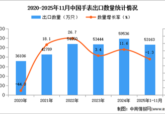 2025年1-11月中国手表出口数据统计分析:出口量同比下降1.3%