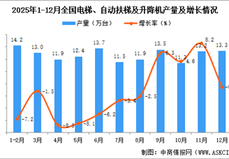 2025年12月全国电梯、自动扶梯及升降机产量数据统计分析
