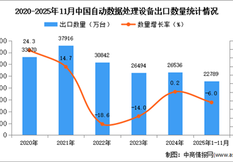 2025年1-11月中国自动数据处理设备出口数据统计分析:出口量同比下降6%