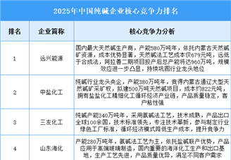 中商情报网讯: 2025年中国纯碱企业核心竞争力排名 排名 企业简称 核心竞争力分析 1 远兴能源 国...