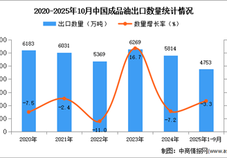 2025年1-10月中国成品油出口数据统计分析:出口量同比下降3.3%