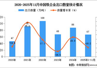 2025年1-11月中国铁合金出口数据统计分析:出口量67万吨