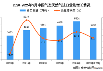 2025年1-9月中国气态天然气进口数据统计分析:进口量同比增长8.2%