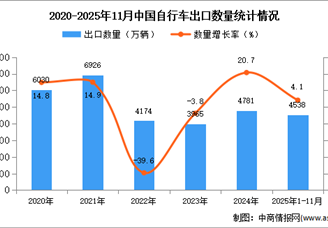 中商情报网讯:据中商产业研究院数据库显示,2024年中国自行车出口量4781万辆,同比增长20.7%。最新数据显示,2025年1-11月中国...