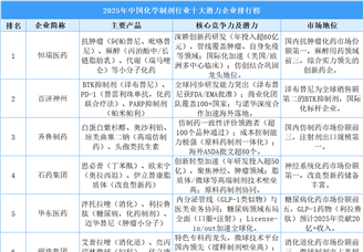 中商情报网讯:2025年中国化学制剂行业十大潜力企业分别为:恒瑞医药、百济神州、齐鲁制药、石药集团、华东医药、丽珠集团、先声...[详细]
