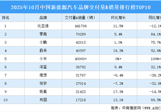 中商情报网讯:10月是车市传统“银十”销售旺季,除理想、广汽埃安环比增速为负之外,其余均为正增长,大部分车企新能源汽车销量...[详细]
