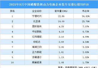 中商情报网讯:9月,我国磷酸铁锂动力电池装车量62.2GWh,环比增长20.5%,同比增长50.4%。TOP10企业磷酸铁锂动力电池装车量合计5...[详细]