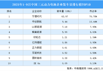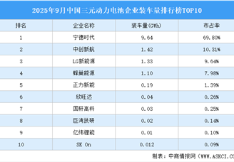 中商情报网讯:9月,我国动力电池装车量76.0GWh,环比增长21.6%,同比增长39.5%。TOP10企业动力电池装车量合计71.76GWh,市占率...[详细]