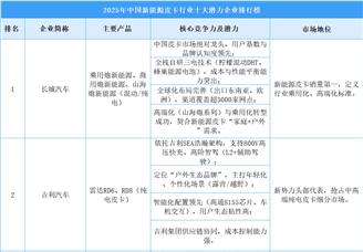 2025年中国新能源皮卡行业十大潜力企业排行榜(附榜单)
