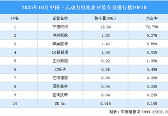 2025年10月中国三元动力电池企业装车量排行榜TOP10(附榜单)