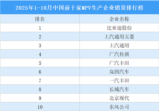 中商情报网讯:1-10月,销量排名前十位的MPV生产企业共销售77万辆,占MPV销售总量的77.9%。比亚迪股份销量最高,上汽通用五菱、...[详细]