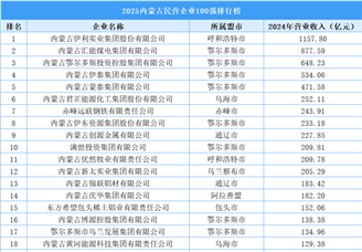 中商情报网讯:近期,内蒙古自治区工商联、自治区民营经济发展服务局发布了2025内蒙古民营企业100强,榜单显示,2025年内蒙古民...[详细]